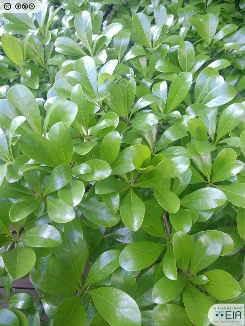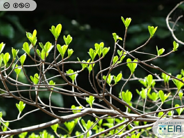 | Atributos foliares | Hojas pequeñas, espatuladas y agrupadas al final de las ramas |