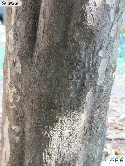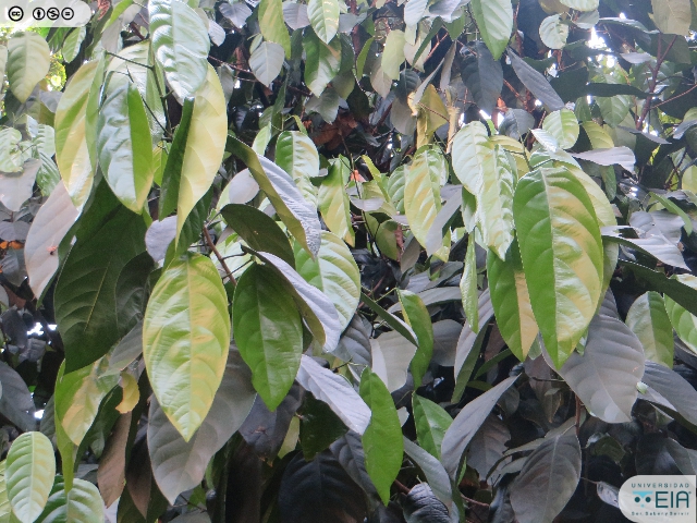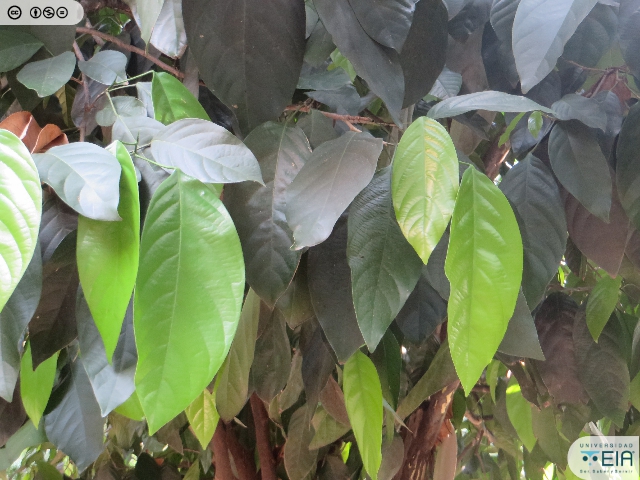 | Atributos foliares | Miden entre 9 y 13 cm de largo por 3 y 5 de ancho, elípticas, lisas, borde entero, coriáceas y con dos glándulas en su base. |