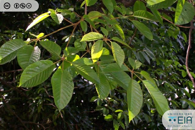 | Atributos foliares | Con 5 a 7 folíolos de margen entera o aserrada. |