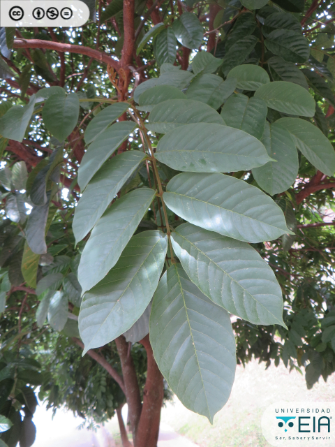 | Atributos foliares | Con peciolulos engrosados, folíolos opuestos en el raquis, oblongos y con nervaduras prominentes y paralelas entre sí |