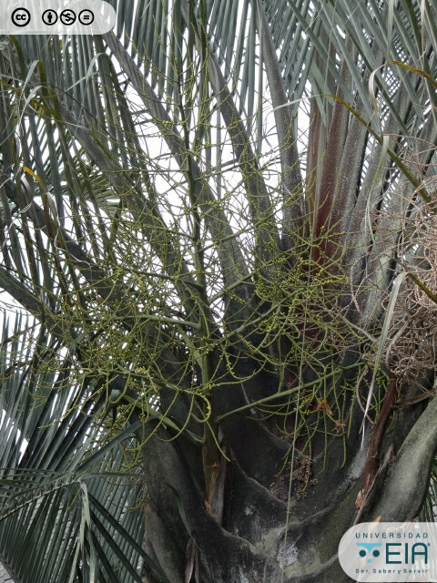 | Atributos foliares | Hojas de 2,5 a 3 m de largo, pinnas de color grisáceo. |