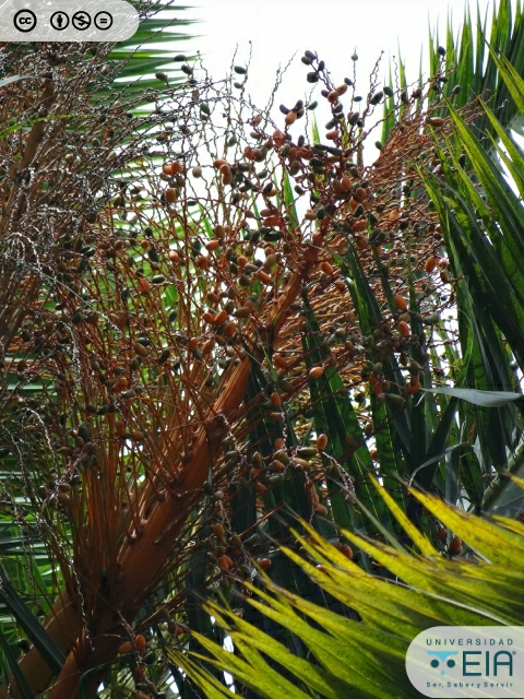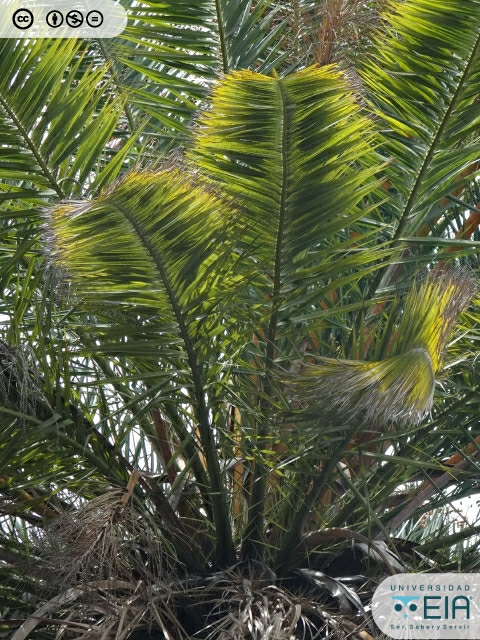| Atributos foliares | Hojas de 6 a 7 m de largo; las pinnas dispuestas en un solo plano. |
