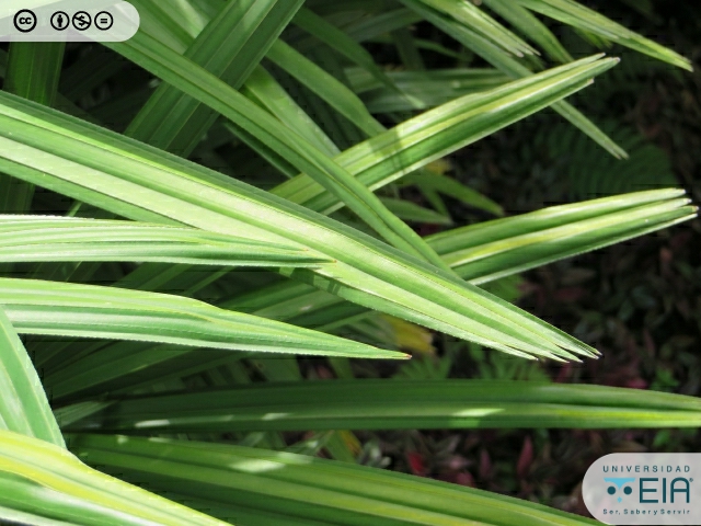 | Atributos foliares | Las hojas en abanico y palmeadas, miden entre 60 y 70 cm de largo. |
