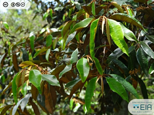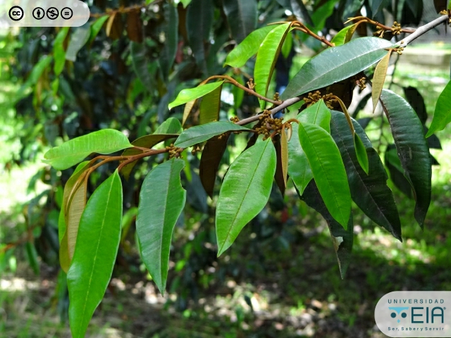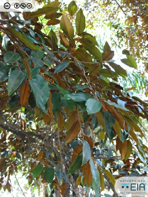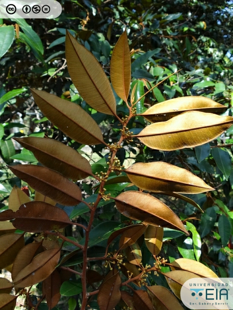 | Atributos foliares | Miden 10 cm de largo por 7 cm de ancho, muy vistosas con el haz verde brillante y el envés café a dorado. |
