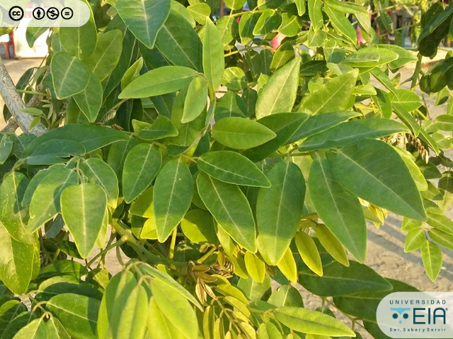 | Atributos foliares | Mide 20 cm de largo por 12 cm de ancho, tienen entre 8 y 12 folíolos con borde entero y forma ovoide |