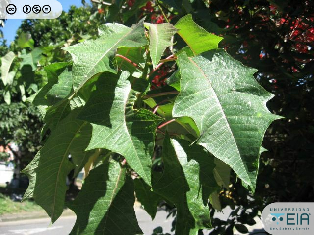 | Atributos foliares | Miden entre 12 y 20 cm de largo, membranáceas y ovadas. Pueden ser rojas, blancas, rosadas o verdes. |