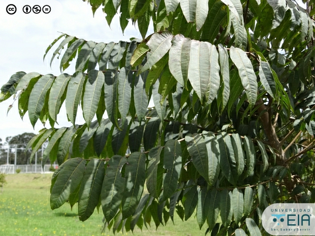 | Atributos foliares | Las hojas miden 35 cm de largo por 20 cm de ancho, tienen entre 8 y 13 folíolos, elípticos, con borde entero; con pelos suaves y dispersos. |