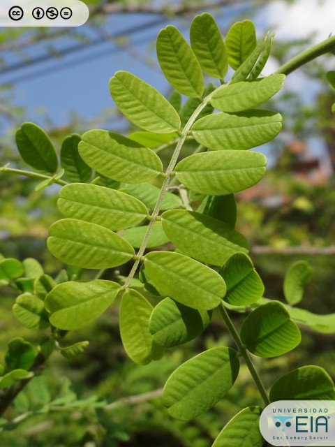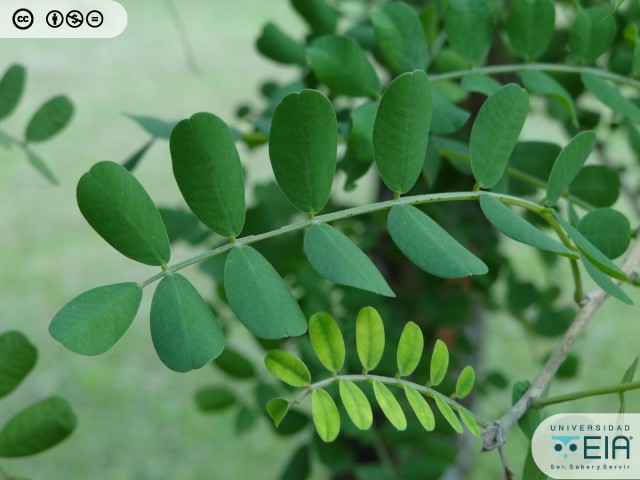 | Atributos foliares | Folíolos alternos, oblongos u obovados y con estípulas, con fuerte olor a frijól |