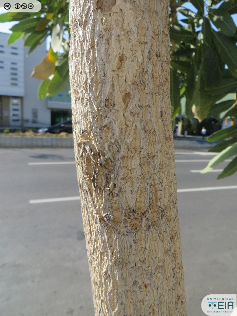 | Atributos foliares | Con 5 - 7 foliolos de color verde grisáceo, oblongos, de margen entera y textura coriácea |