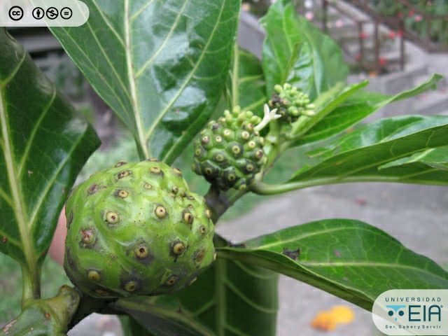 | Etimología | Morinda, del latín morus, por la similaridad de su fruto con una mora; indo, por su procedencia de la India; citrifolia, por tener las hojas supuestamente parecidas a las de un cítrico. |