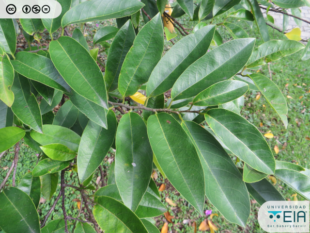 | Atributos foliares | Miden 4-13 cm de largo y 3 - 6 de ancho, glabras, margen entero |