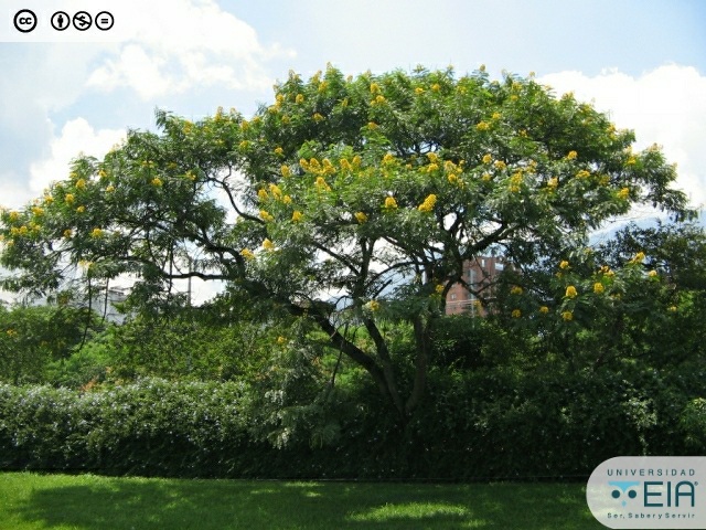 | Etimología | Senna; procede de la palabra árabe sanā, con la que se designaban algunas especies de hojas y frutos con propiedades medicinales; spectabilis, epíteto del latín que significa espectacular, en alusión a su aspecto cuando está en floración. |