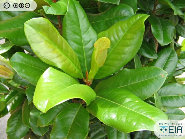 | Atributos foliares | Miden 20 cm de largo por 8 cm de ancho, con borde entero y con estípulas |