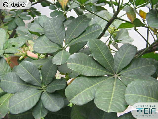 | Atributos foliares | Las hojas tienen entre 5 y 7 folíolos, glabros y coriáceos |