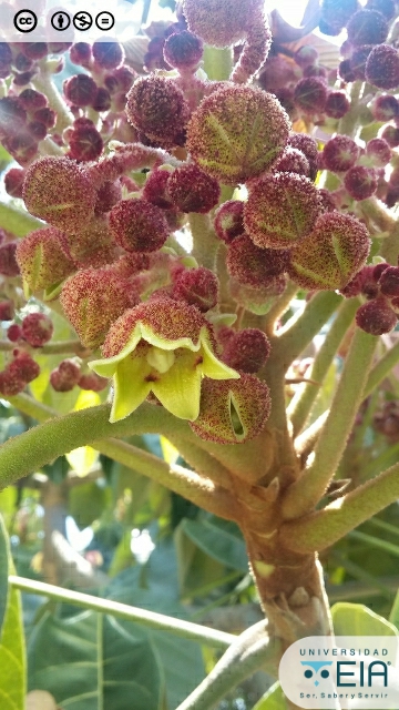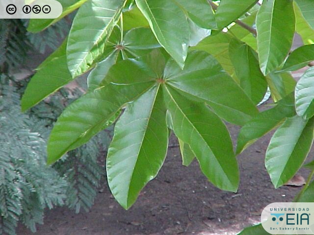 | Atributos foliares | Las hojas miden 40 cm de largo, glabras, palmeadas; con estípulas |