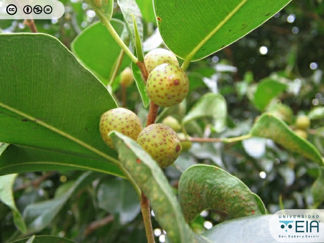 | Atributos foliares | Hojas en espiral, ovadas o lanceoladas, coriáceas, con ápice acuminado. Con estípulas. |