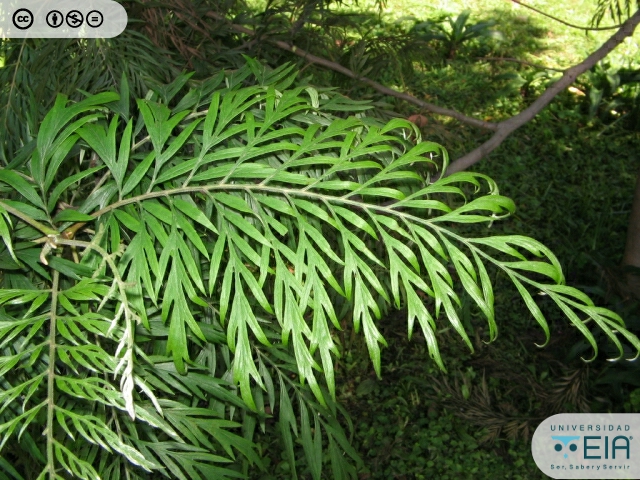 | Atributos foliares | Miden 20 cm de largo por 15 cm de ancho, divididas en segmentos angostos, similares a las de un helecho y coriáceas |