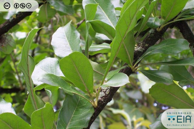 Atributos foliares Miden 10 cm de largo por 2 cm de ancho, borde entero, con forma de espátula, lisas y coriáceas.