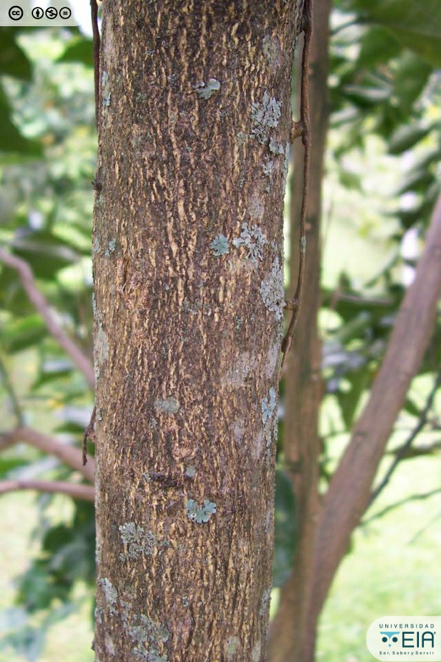 | Atributos foliares | Con forma oblonga a elíptica, miden de 6 a 15 cm de largo y de 2 a 9 cm de ancho, ápice agudo, base redondeada u obtusa, con el haz verde lustroso y el envés mate. |