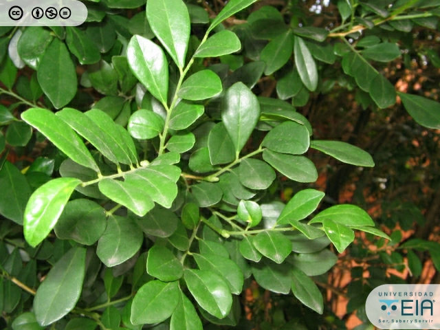 | Atributos foliares | Entre 3 y 9 folíolos que miden entre 1 y 4 cm de largo, con el ápice obtuso, base cuneada y brillantes |