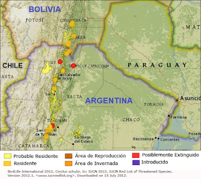 Hábitat: ríos y arroyos tormentosos de las selvas, bosques montanos, bosques del chaco serrano, hasta 2700m snm.