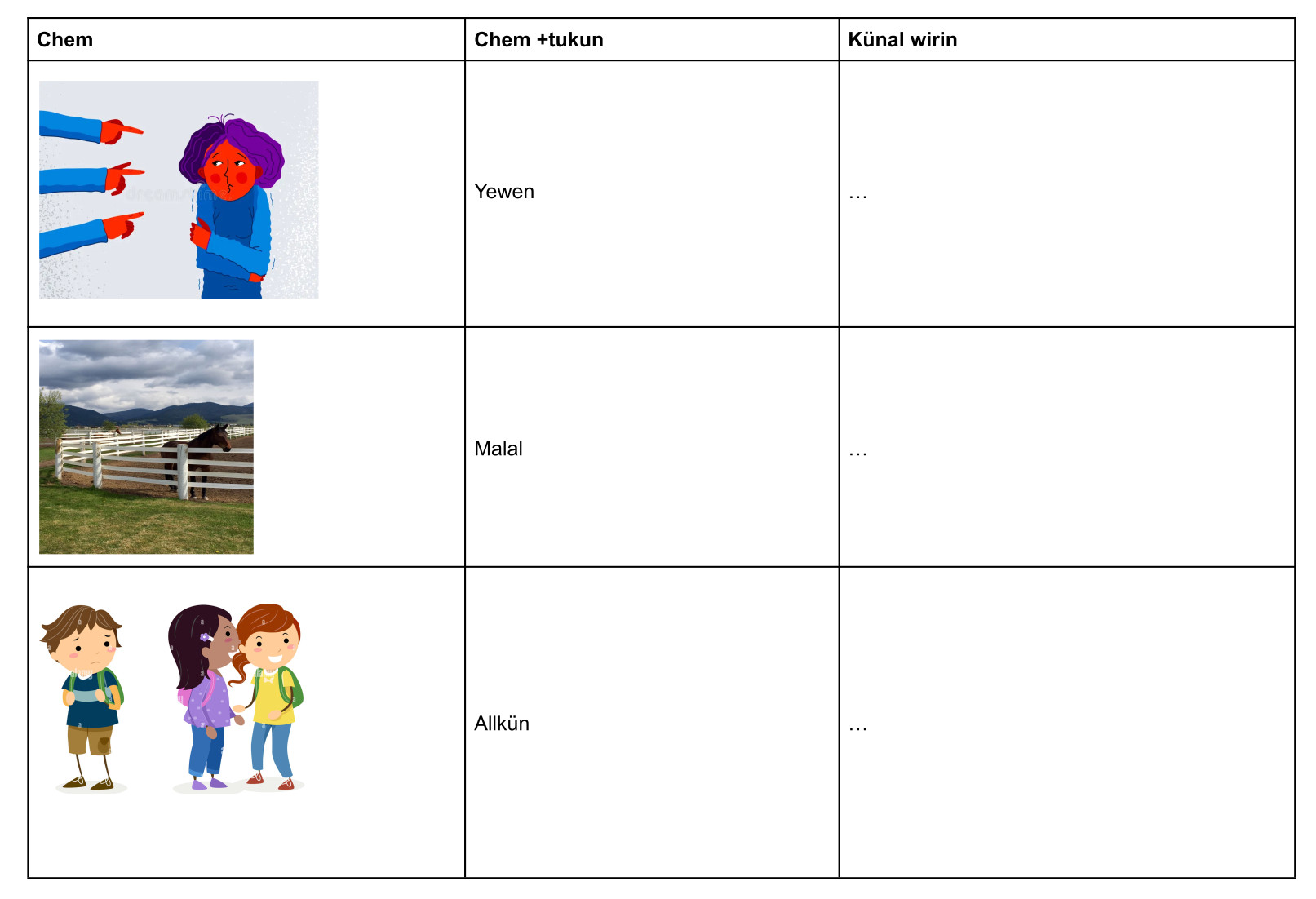 El objetivo de este primer conjunto de actividades o Ruka Küdaw Kiñe, es practicar y explorar formas de estructurar palabras complejas.