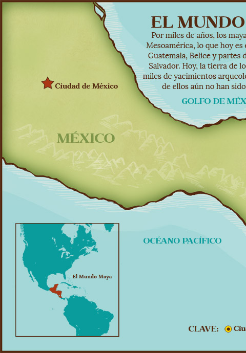 Los primeros mayas establecieron comunidades sedentarias en las regiones de la costa pacífica alrededor del 1800 AEC. Para el 250 EC, los mayas habían desarrollado una civilización vibrante que consistía de numerosas ciudades estados independientes, incuyendo los conocidos centros ceremoniales de Palenque, Tikal, Copán y Calakmul. Hoy la tierra de los mayas alberga miles de yacimientos arqueológicos, la mayoría de ellos aún no han sido explorados. Muchos de estos yacimientos antiguos están rodeados por pueblos mayas contemporáneos que han estado activamente poblados por varios cientos de años. La tierra natal de los mayas continúa influyendo su cultura y la visión del mundo de los mayas.