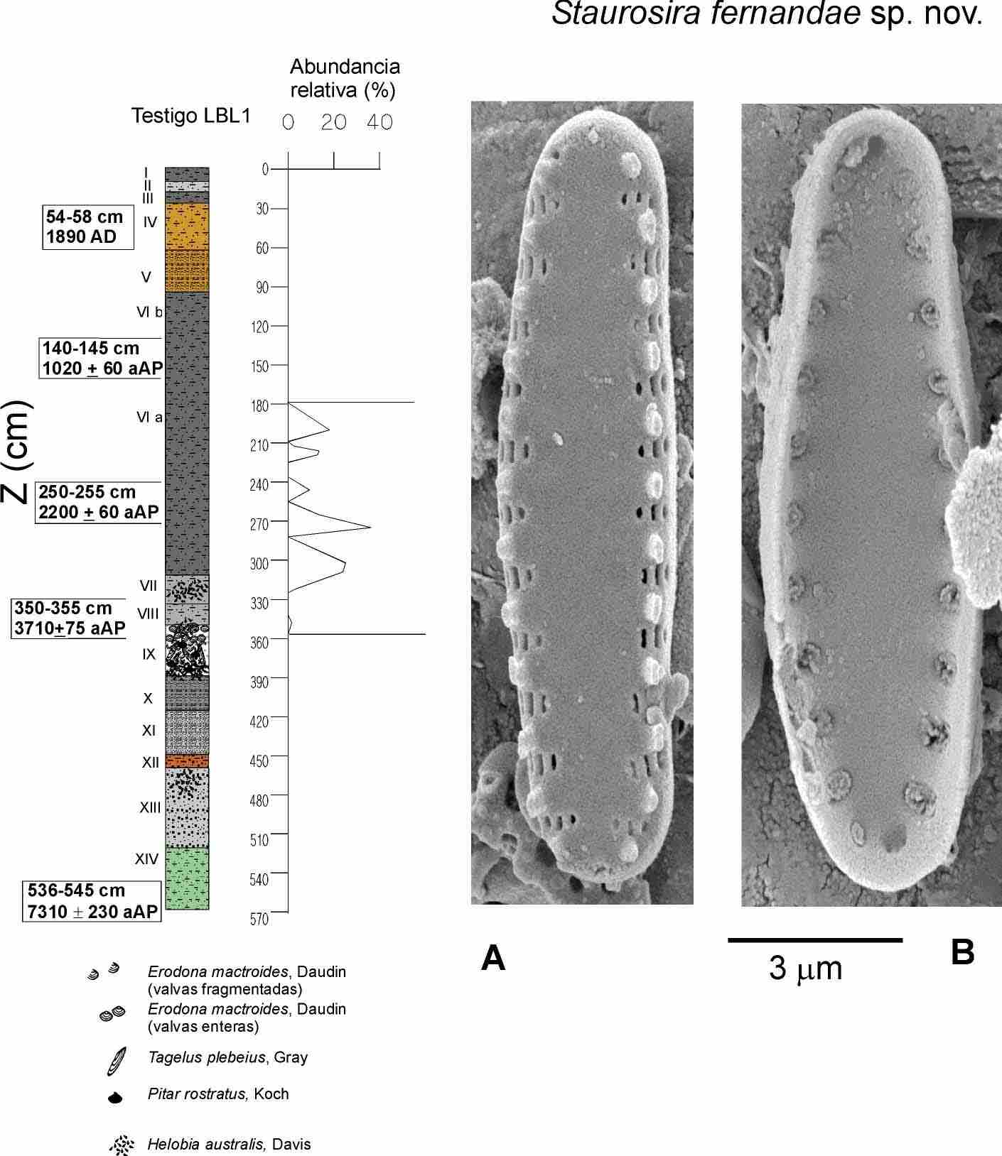 Staurosira fernandae (García-Rodríguez, Lange-Bertalot & Metzeltin) sp. nov. Especie hallada en el registro fósil de Laguna Blanca, Maldonado, sudeste del Uruguay.
