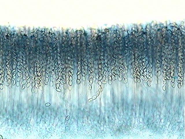 Ascobolus viridulus corte de apotecio donde se observan ascos