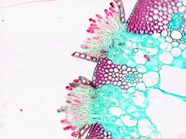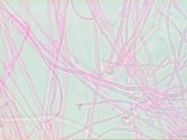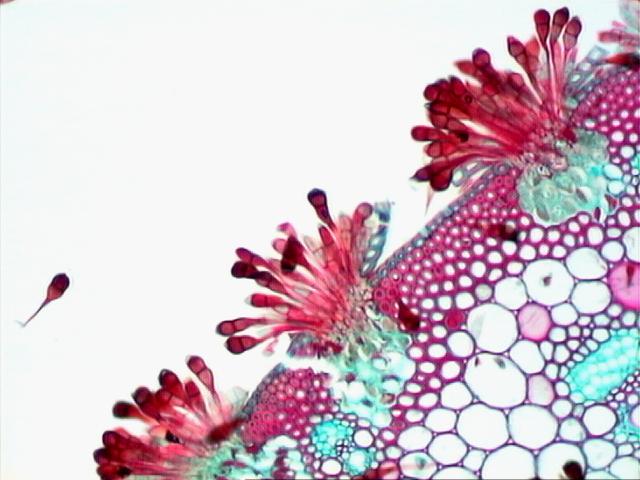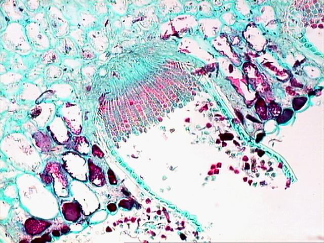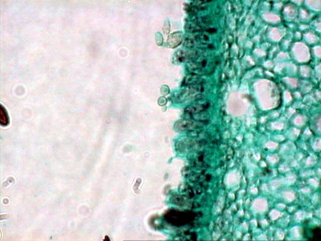 Coprinus sp., corte transversal de las laminillas a menor aumento,