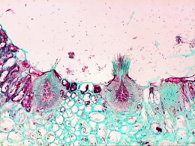 Puccinia graminis tritici sobre hoja de Berberis vulgaris.