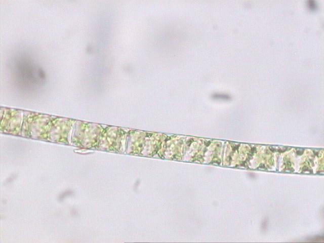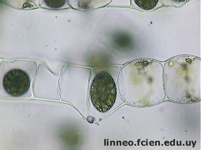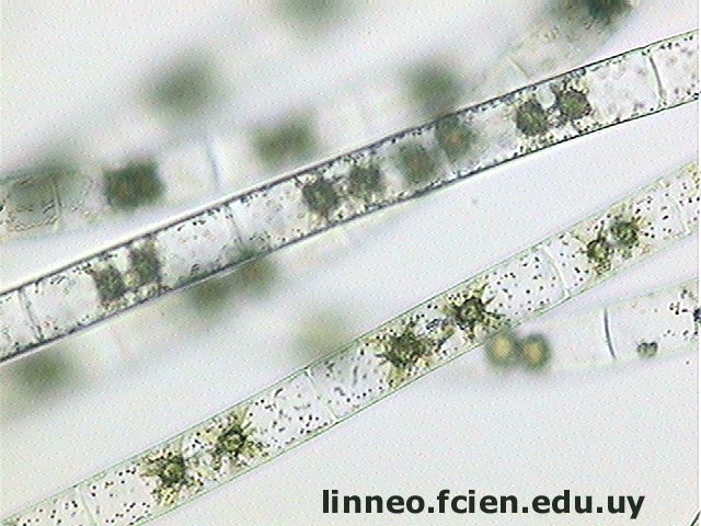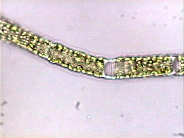 Oedogonium sp. Observe la presencia de bandas de crecimiento.