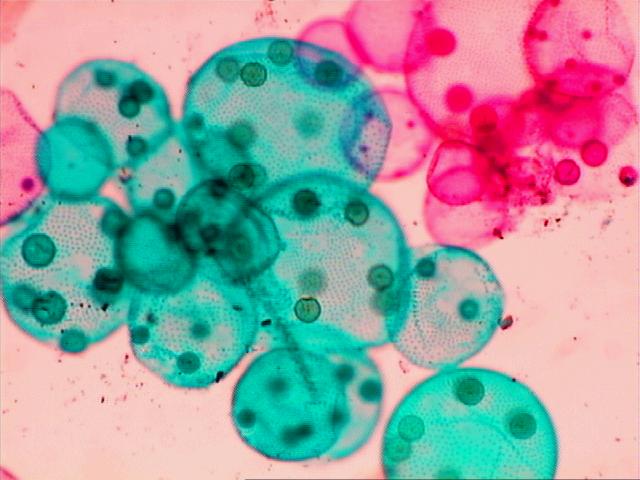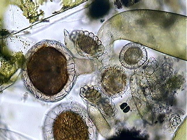 Nitella sp. Conjunto de glóbulos (gametangios masculinos)