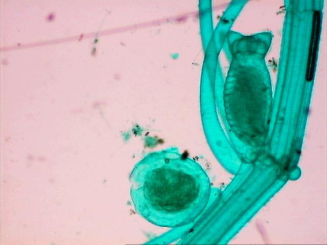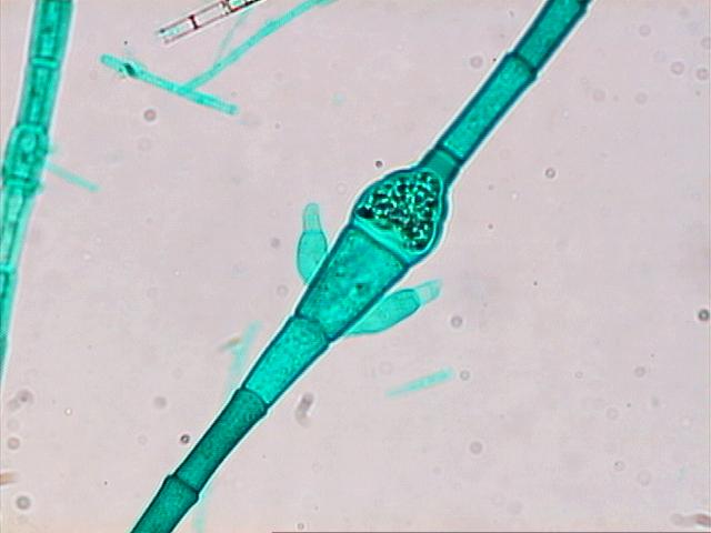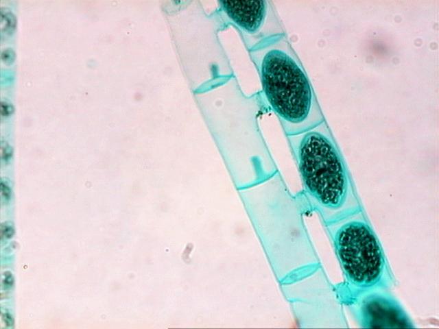 Oedogonium sp. Filamento con un cigoto en desarrollo