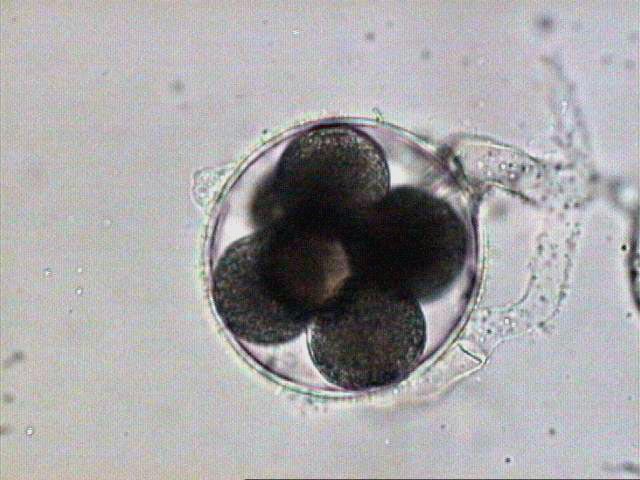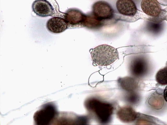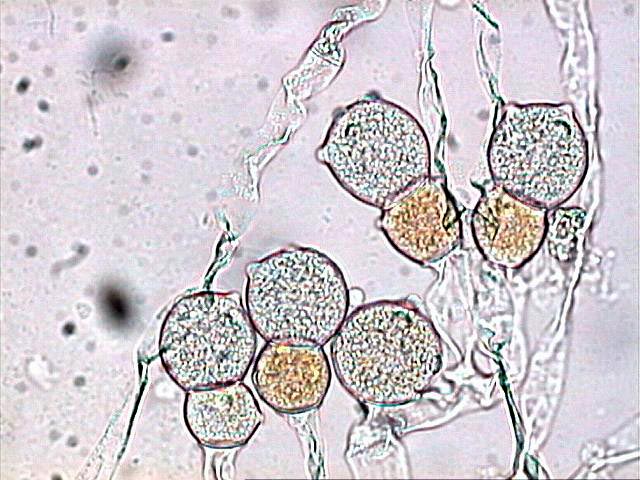 Zoosporangio con zoosporas enquistadas en su interior.