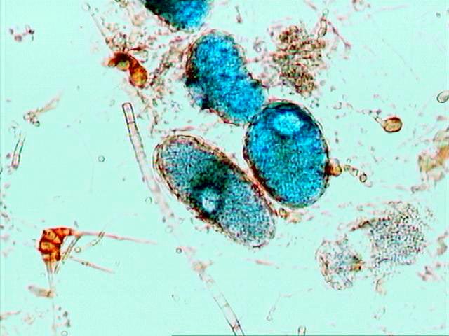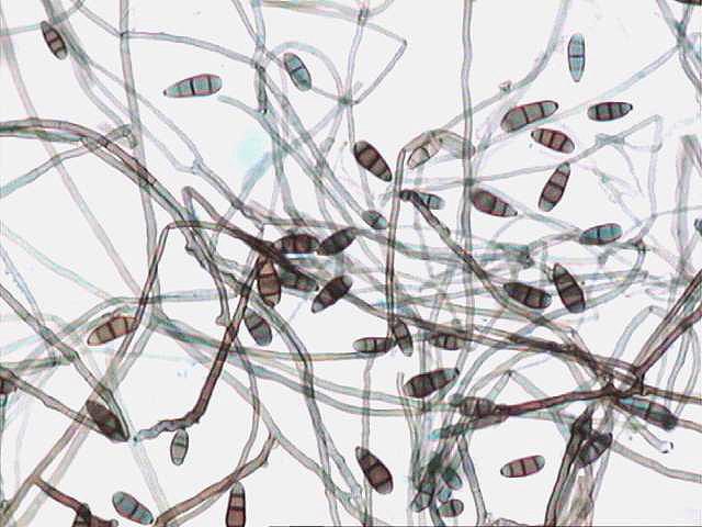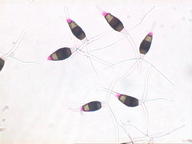 Pestalotiopsis guepinii. Conidios con apéndices.