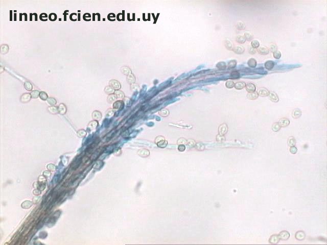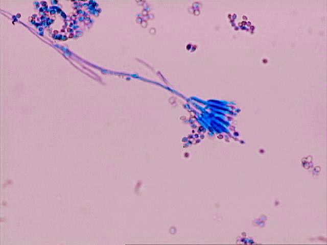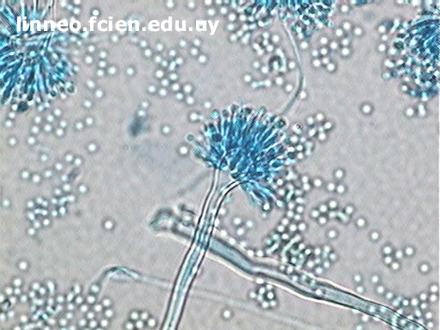 Aspergillus sp. Observe la vesícula sobre la que se disponen