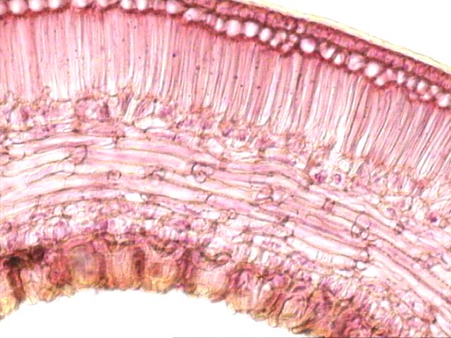 Zona lateral, observe tejido de transfusión, estomas invaginados.