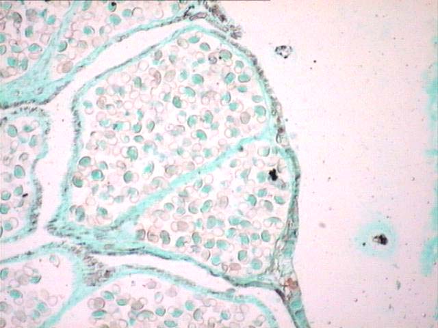Observar microsporangios y granos de polen.