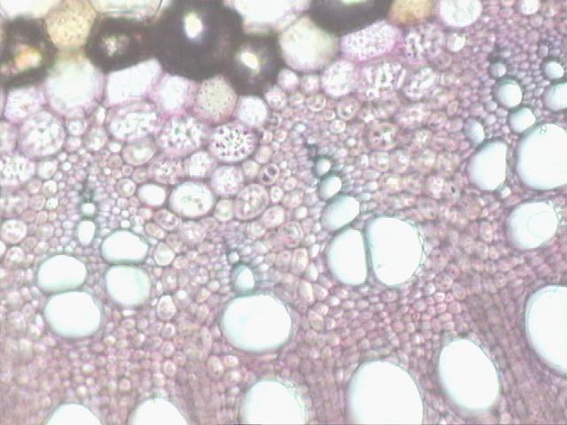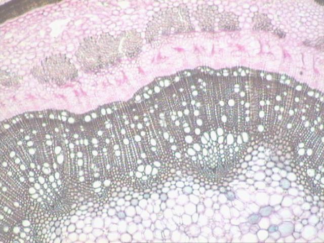 Tallo secundario de dicotiledónea. Hay abundante xilema y floema