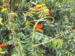 Flores: Amarillentas que cambian al amarillo rojizo y al rojizo.
