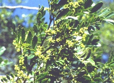 Flores: inflorescencias axilares en cortas panojas, amarillentas,