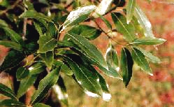 Hojas: simples, lanceoladas de 6-10 cm de largo, glabras, brillantes