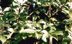 Hojas: compuestas, quinquefoliadas. Folíolos elípticos