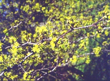 caduco, verde intenso que se torna rojizo en otoño. Ramillas en