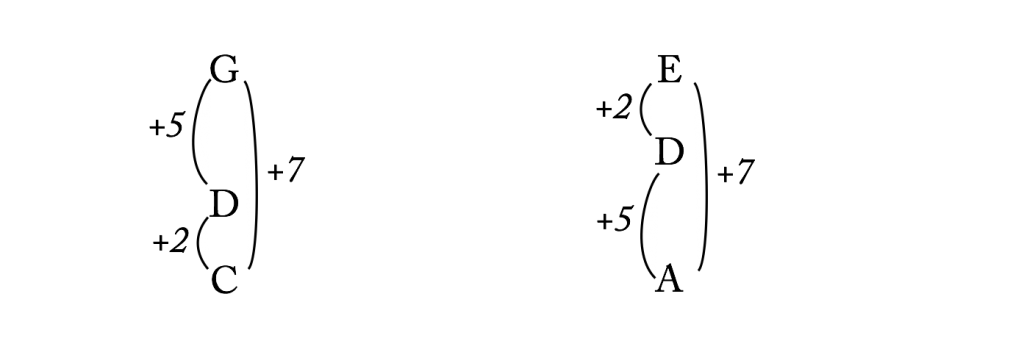 This passage above from Debussy’s “Sunken Cathedral” is an example. Just as was the case in the [transpositionally-related passages][transposition], these two gestures have the same intervallic content—and so, our ears recognize them as very similar. (Debussy underscores that similarity by giving both of the gestures the same rhythmic setting.) Unlike transposition, however, the interval content of these two gestures is not arranged in the same way.