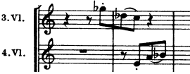 Pitch-class symmetry is very similar to pitch symmetry, but understood in pitch-class space. Below you’ll see another passage from the same piece by Bartók. As above the lower strings have an ascending gesture that mirrors the descending gesture in the upper strings.