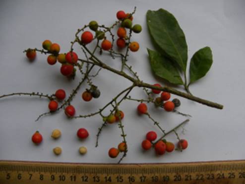 NOMENCLATURA E SIGNIFICADO: VACUM DE INVERNO (porque frutifica no mês de julho para alegria da passarinhada) ou Vacum de cacho porque os Frutos dão em pequenos cachos.