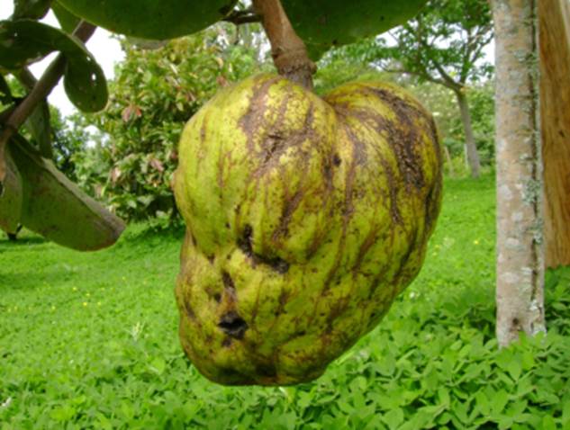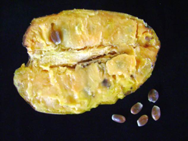 mamíferos grandes. Os frutos quando maduros ficam moles e se partem se
