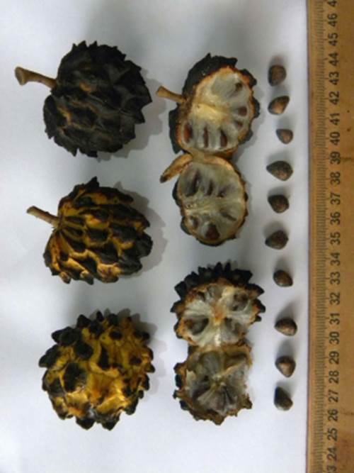 Mudas: Sementes são de cor castanho acinzentada, meio triangulares no comprimento, que conservam o poder germinativo por até 2 anos se armazenadas limpas e secas em local escuro. Quando plantadas logo que colhidas, germinam em 40 a 75 dias. Recomendo plantar 1 ou 2 sementes por embalagem contendo substrato feito de 50% de terra vermelha, 40% de composto de galhos e folhas trituradas e 10% de areia de rio. As mudas atingem 40 cm com 8 a 10 meses de idade, mais apreciam ambiente sombreado para formação. A frutificação inicia-se com 4 a 5 anos, dependendo do solo e tratos culturais.